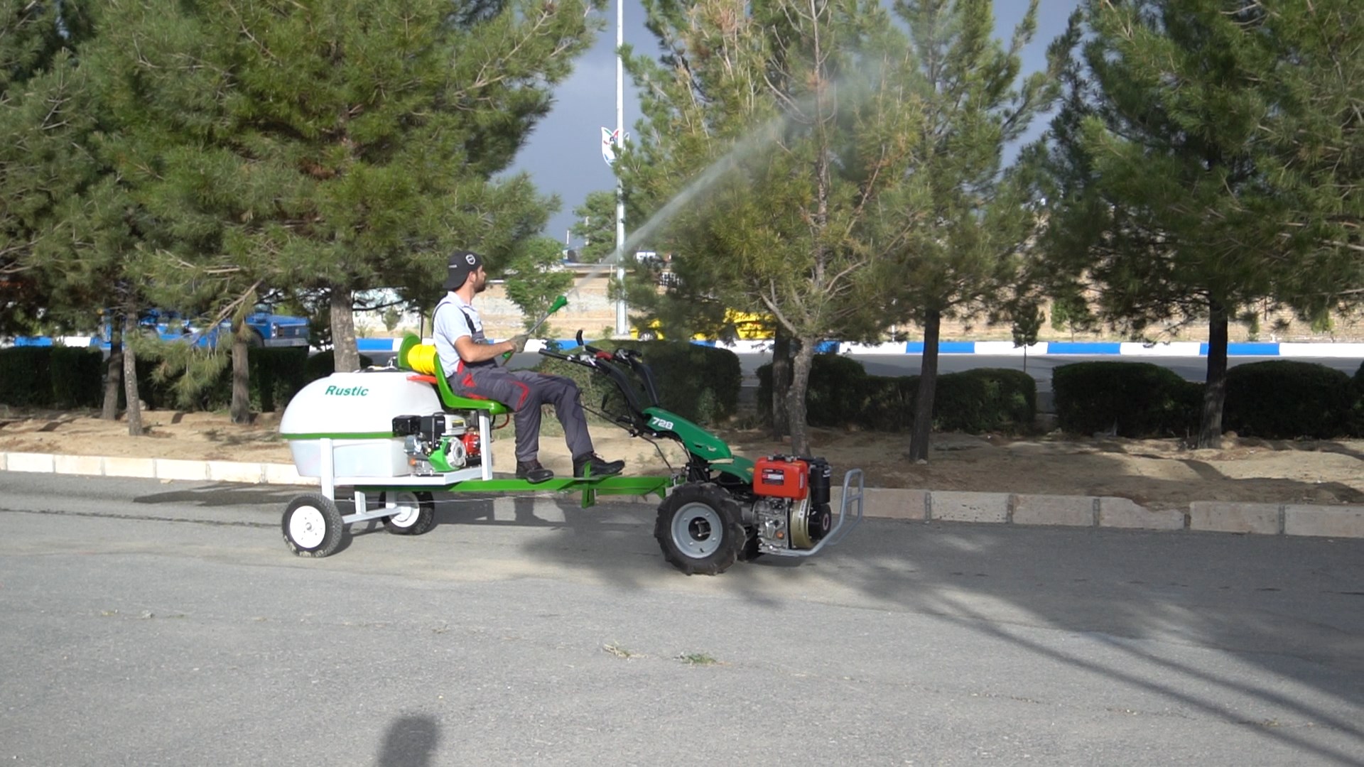 سمپاشی زمینهای زراعی و باغات معمولا کاری طولانی و خسته کننده میباشد. بسیاری از کشاورزان و باغداران از سختی کار با سمپاشهای فرغونی گله دارند و از سنگینی حمل آن در زمینهای زراعی و باغی شکایت میکنند. با سمپاش پشت تیلری 200 لیتری دیگر شما سمپاش را حمل نمیکنید بلکه این تیلر شماست که شما و سمپاشتان را حمل میکند. به راحتی بر روی صندلی تعبیه شده بر روی سمپاش مینشیند، فرمان تیلر را به دست میگیرید و با پدال ترمز زیر پایتان در موقع لزوم ترمز گیری میکنید. دیگر نه تنها کار با سمپاش برای شما سخت نخواهد بود بلکه تجربه ی سمپاشی در حالت نشسته بر روی تیلر و حرکت بر پشت تیلر برای شما یک تفریح قلمداد خواهد شد.